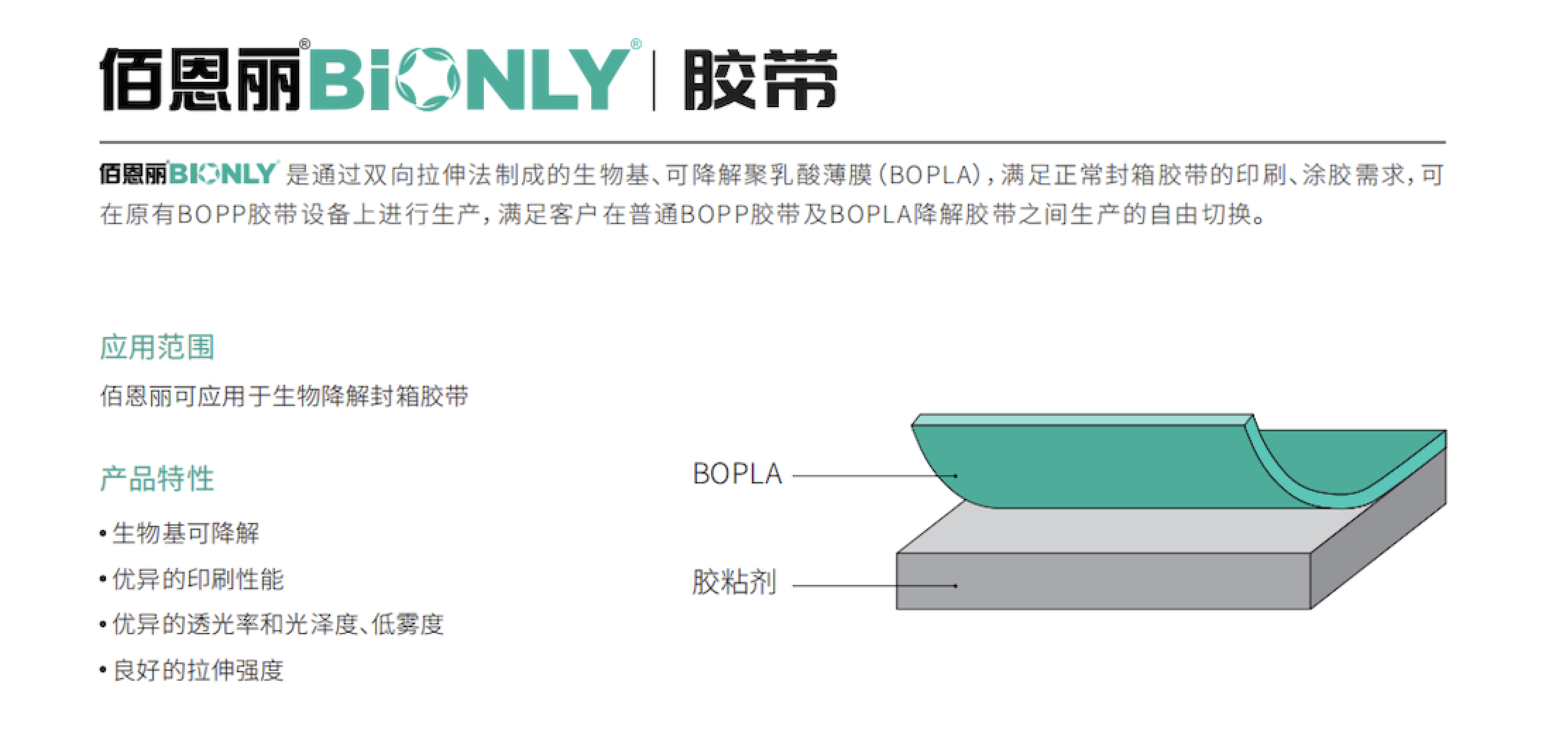 去年11月,在廈門舉辦的首屆新材料科技創(chuàng)新發(fā)展大會(huì)上,現(xiàn)場嘉賓都收到一份“特殊”的禮物——環(huán)保膠帶。這款產(chǎn)品的出現(xiàn)吸引了行業(yè)眼光,其產(chǎn)品基材中的“核心黑科技”所使用的正是國內(nèi)首個(gè)規(guī)模化量產(chǎn)的新型全生物可降解膜材BOPLA——佰恩麗®BiONLY®。